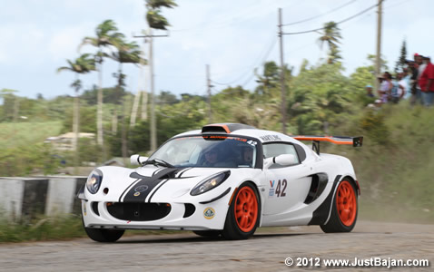 Although new to Sol Rally Barbados itself, Hartling made his first competition appearance in the island in the Valvoline Shakedown Stages just two weeks ago; co-driven in his striking Lotus Exige by fellow-Canadian Andy Proudfoot, he ran in SuperModified 11. Despite encountering gear selection problems in the early part of the event – he lost fourth, fifth and six – he was fourth in class after three stages, but then found a gearbox oil bung missing at service, so retired to prevent further damage.