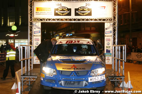 Group N and the opening round of the Mitsubishi Ralliart Evo Challenge was won by Ireland's Daniel Barry and Martin Brady (Evo IX) in a time of 58 minutes 43 seconds; Armstrong's time was 63m 36.8s. The overall winners were Will Nicholls and Nick Broom (Subaru Impreza WRC) in a time of 56m 14.0s.