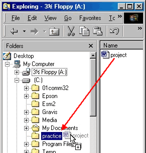 Select the source file by holding down the left mouse button